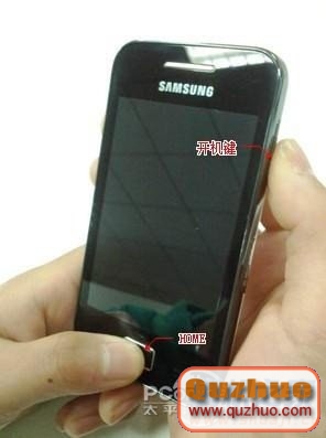 2:然後手機完全關機,然後在關機狀態長按”HOME鍵+開機鍵”,出現幾排英文字母松手。