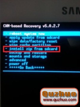 3、如果你把文件放在SD卡,那麼選擇choose zip from sdcard。如果你把文件放進內置內存,那麼選擇choose zip from internal sdcard