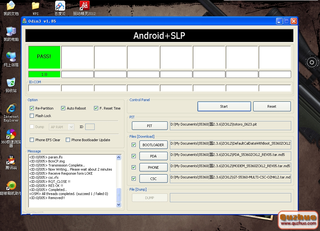 6---- 點Start(開始)開始刷機。出現下圖的情況,並且手機自動重啟後,刷機就成功了!