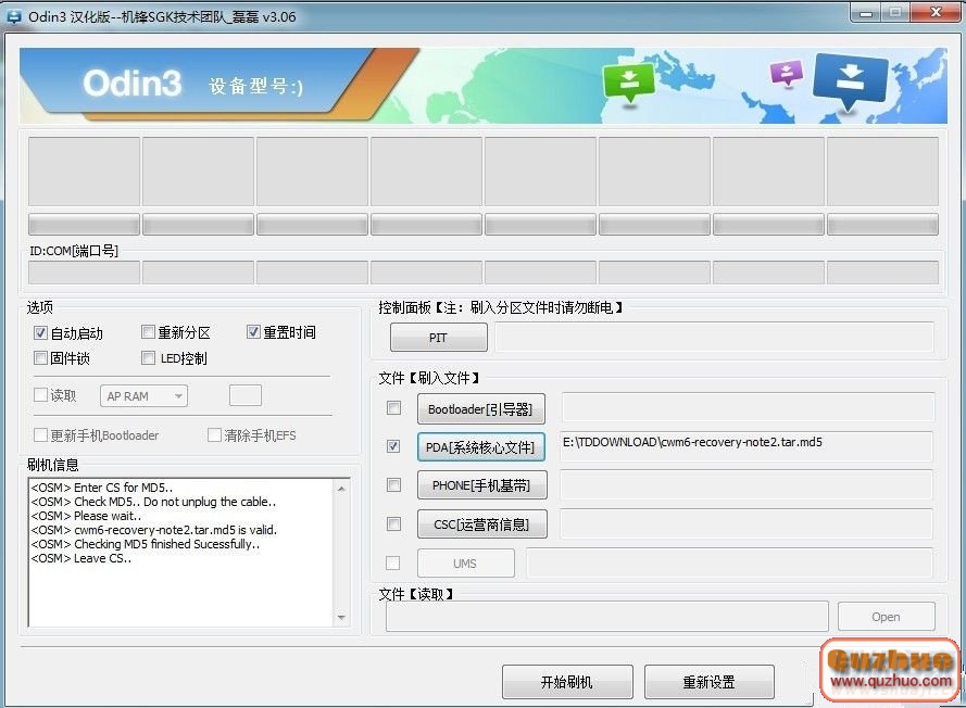 打開 odin3 ,界面上部左側,在一個標簽“ID:COM(端口號)”