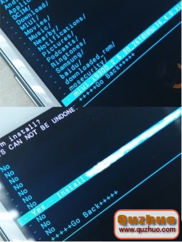 (這一步注意了!!如果你是把ROM放在外置內存卡的話;這裡就選第一個選項“choose zip from sdcard”!!