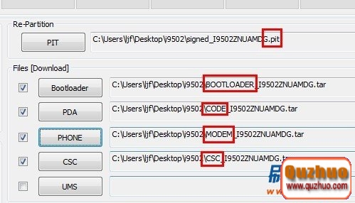 在這裡要注意的是:有些rom包解壓後,上面(PDA,PHONE,CSC,PIT)幾項都有的話,都選上,有些是一體包,只有一個.tar的包,這個時候只選擇PDA這一項就可以了,不同的rom有所不同,至少PDA這一項是必選的,所以大家不要少選了。