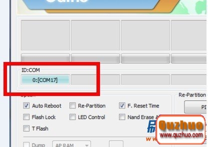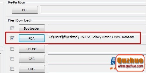 4:打開odin軟件之後軟件會自動識別你的手機,識別成功後會在ID:COM處顯示藍色的(表示手機連接成功了,如果沒有顯示藍色的,說明沒有有連接好),然後勾選PDA,選擇剛才下載下來的tar格式的root包。