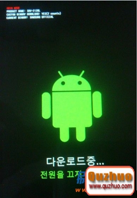 1:手機先完全的關機,然後同時按住下音量下鍵 + HOME鍵 + 電源鍵,等待3秒,出現韓文界面