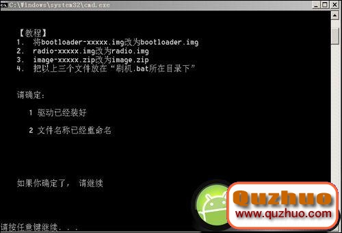 7、此時我們根據提示:下面將開始刷入bootloader,請確認,這時我們按任意鍵繼續: