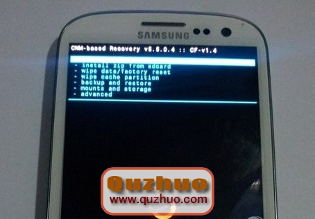 5.接下來在手機上操作:把手機關機,同時按住音量上+HOME+電源鍵,在出現開機第一屏時放開,手機進入Recovrey模式.