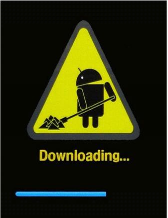 利用你熟悉的一種方法( 手機關機 按“音量下”+ “開機鍵” 進入挖煤),進入“挖煤”模式,界面如下:機器人拿著鏟子在“挖煤”。這就是刷機狀態。表示手機已經就緒,可以接受刷機。