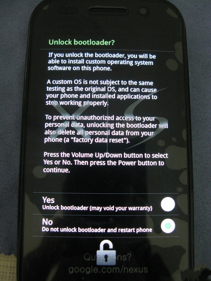 此時,手機上會出現以下選項,用音量鍵選YES,電源鍵為確定。