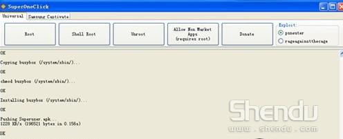 4、發現SuperOneClick左上角有一個root按鈕,點擊一下,手機就不要動了,直到success就說明三星i9003手機root成功了,會在你的手機上出現一個SuperUser的應用。