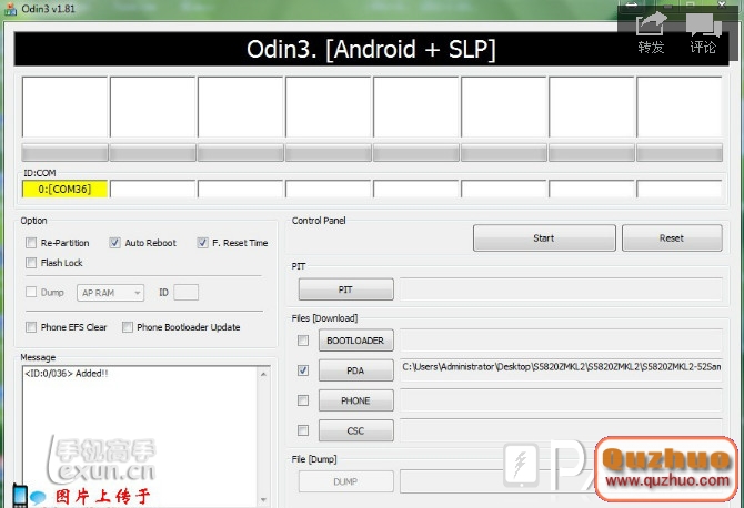 *點擊BOOT從刷機工具包中選擇APBOOT_S5830ZCKPA_CL382966_REV03_user_low_true.tar.md5