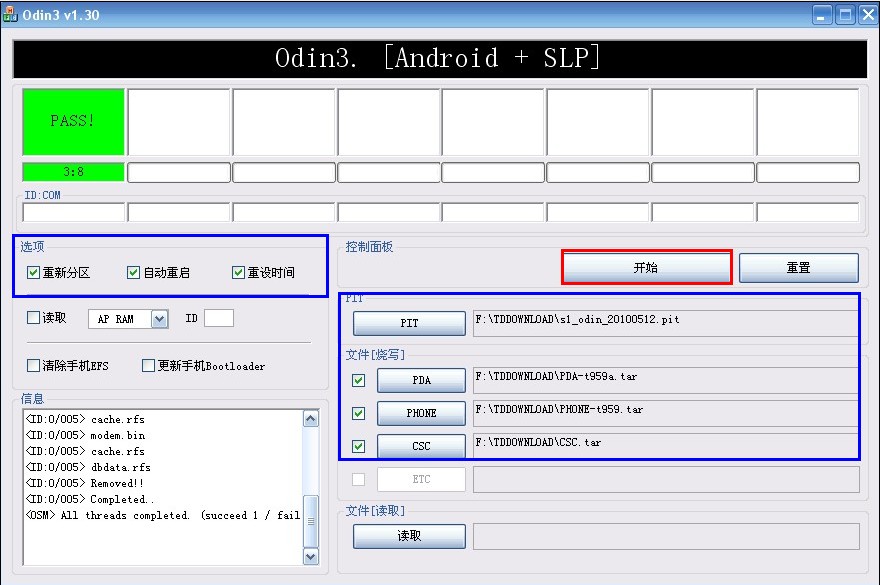 (1)運行刷機工具包中的Odin3 v1.30.exe