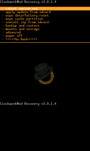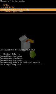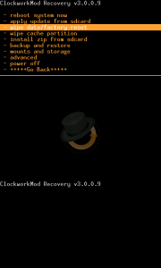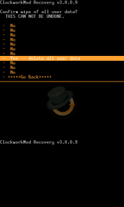 選擇"wipe data/factory reset"並確認, 選擇"Yes -- delete all user data"並確認;