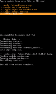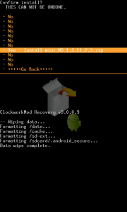 2、選擇你拷到SD卡中的MIUI ROM包並確認。選擇"Yes - install miui_NS_1.3.11_2.3.zip "並確認。