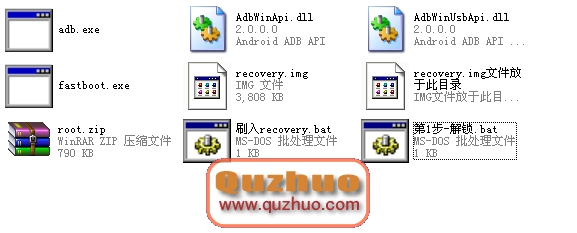 文件下載 下載工具包 解壓後如下 解鎖手機 如果已經解鎖,可跳過此步;解鎖會清空用戶數據,但不會對存儲卡有影響。 1.關機狀態下,同時