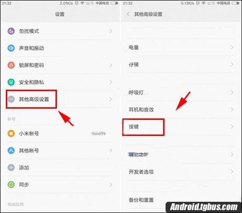 1.打開小米5手機【設置】點擊【其他高級設置】,點擊【按鍵】(如下圖)。