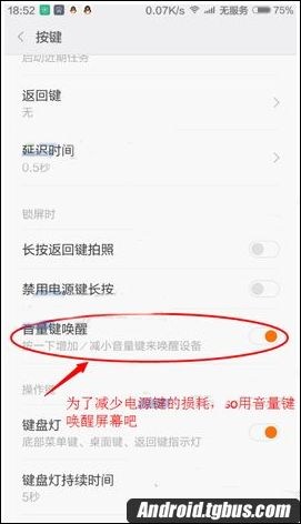 2.將【音量鍵喚醒】開啟即可(如下圖)。