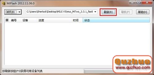 然後運轉刷機東西MiFlash,點擊左上角“浏覽”,直接找到“miui_MiTwo_3.3.1_fastboot_4.1”文件夾後點擊確定。之後再單擊“改寫”按鈕。