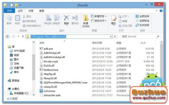 翻開卓大師刷機專家的裝置文件夾,把文件途徑仿制下來,我的是在C:\Program Files (x86)\zhuods。