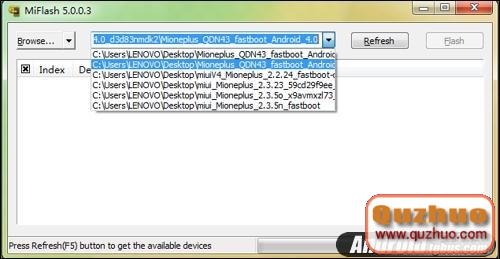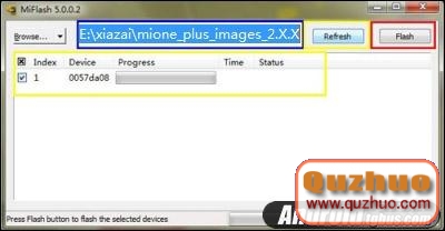 點擊黃色圈選部分Refresh,刷機程序會自動識別手機,點擊紅色圈選部分Flash開始刷機。