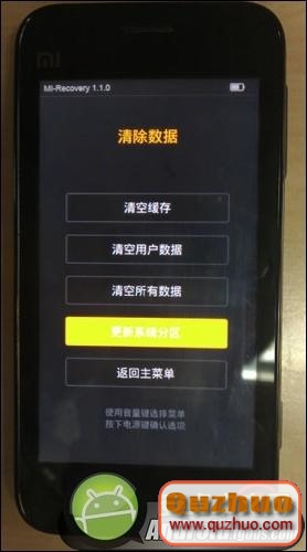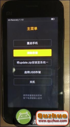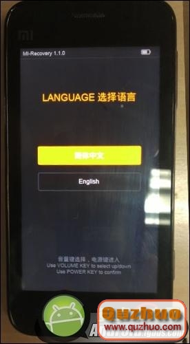 1、進入Recovery後,用音量鍵選擇選項,用電源鍵確定選項。