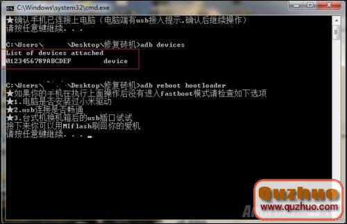 3、大約30秒左右,估算你的電腦已經識別了小米手機,根據你的要求選擇點擊相應的BAT文件