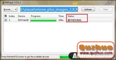 點擊黃色圈選部分Refresh,刷機程序會自動識別手機,點擊紅色圈選部分Flash開始刷機。