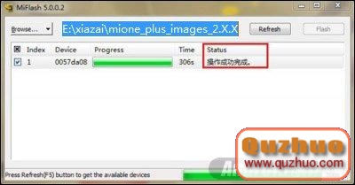 等待小米手機刷機工具,如下圖表示已經刷機成功,手機會自動開機。