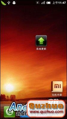 1.MIUI在線完整包升級推薦在WLAN或3G環境下進行,點擊小米手機桌面上系統更新程序。