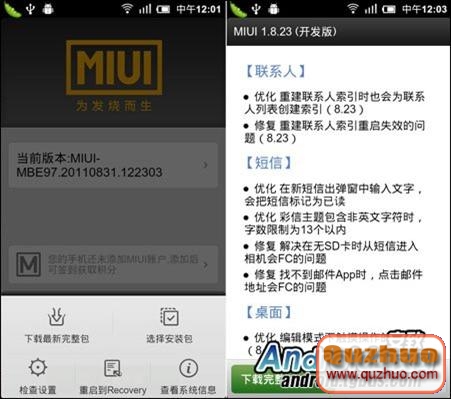 MIUI完整包升級不需要清除數據,降級需要清除數據。