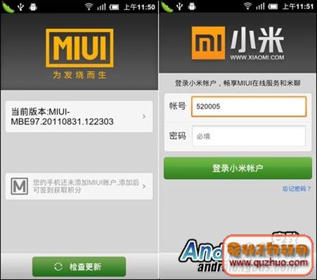 2.登陸你的小米帳戶,米聊、小米論壇、MIUI大本營都可以。