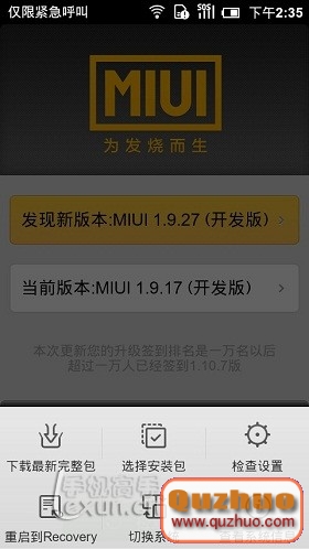 有時候沒有無線網絡,包月流量不夠用,怎麼辦呢?沒有關系,我們可以使用完整包,升級包(升級包下載請訪問www.xiaomi.com)在本地進行升級。