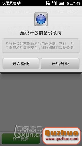 4,點擊“立即更新”,彈出如下對話框,點擊“”開始升級“按鈕。