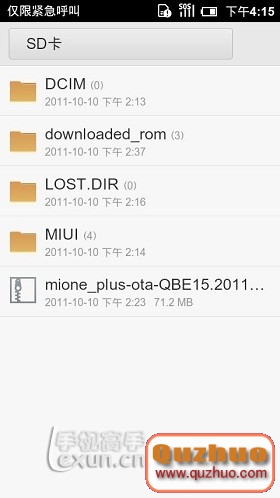 當你在其他系統下,沒有類似於小米手機內置的升級刷機功能,該如何操作呢?其他系統下如何刷回MIUI呢?我會為大家圖解Recovery下的刷機方式。在刷機開始前我們需要先將需要刷入的ROM更名為update後直接拷入存儲卡內(切記非二級文件夾,假設存儲卡在電腦中為盤“H”,update文件應該為h:/update.zip),然後將手機關機。
