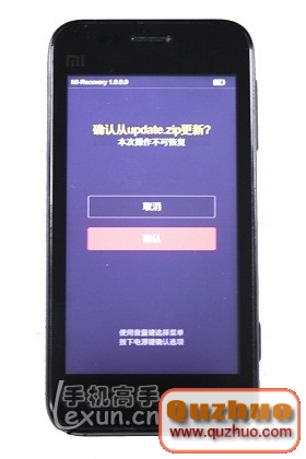 6,進入Recovery,選擇“將update.zip安裝至系統一”。