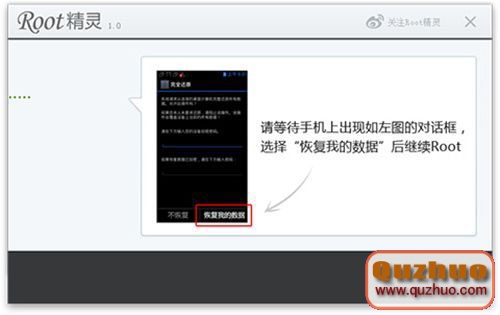 3)依據“ROOT精靈”的指示操作,在手機上點擊“康復我的數據”。(如下如所示)