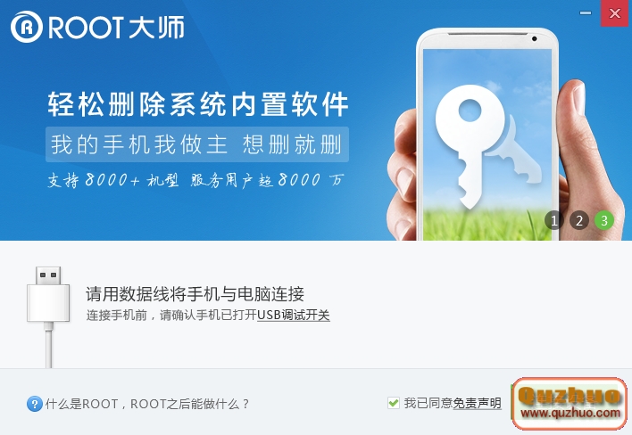 1、翻開ROOT大師,等候usb銜接成功,如下圖所示:
