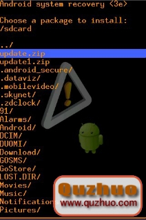 3、使用音量鍵選擇,電源鍵確認。選擇update.zip以後等待Recovery自動升級。
