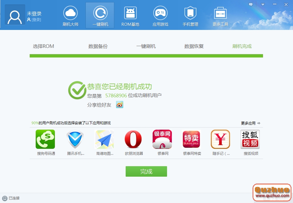 6、軟件提示刷機成功後手機自動開機,第一次看機比較慢,請耐心等待。