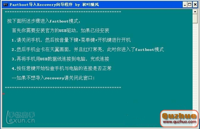 5.按以上提示操作後,如果連接正常的話,會提示你recovery刷入中