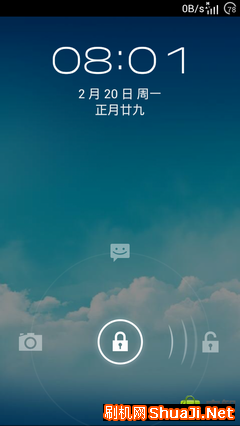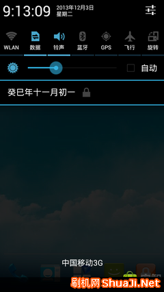 10.下拉菜單增加農歷和鎖屏按鍵,狀態欄統一為藍色風格