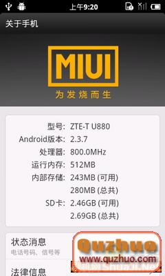 這個是中興U880 MIUI2.3.7更新整合純淨版ROM 增加流暢度速度更快更簡單