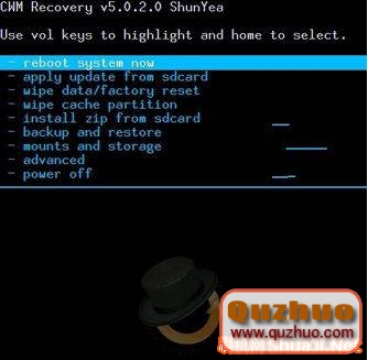 g)到這裡就刷機結束,此時按返回鍵(屏幕右下方小箭頭按鍵),返回上一層菜單,選擇第一個 “reboot system now”(中文版:重啟系統),手機即重啟,刷機就完成了~~