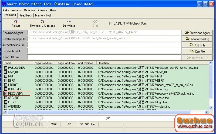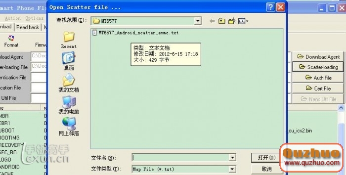 選中文Recovery更新包文件夾裡面的MT6577_Android_scatter_emmc.txt文件,