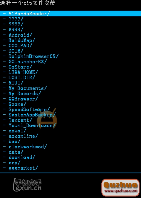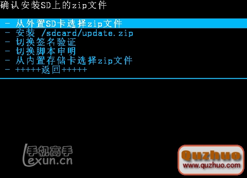 刷好了第三方recovery下面就可以用它來刷機了,也就是卡刷rom