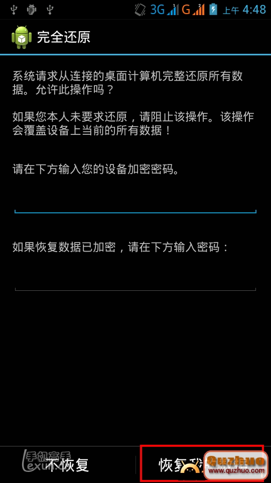 7,手機上選擇《恢復我的數據》,不要管密碼!