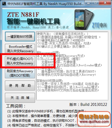 來說一下中興N881F刷入recovery的操作吧,這個recovery是第三方的recovery,為什麼要刷入recovery呢,因為只 要刷入第三方的recovery的才可以刷入第三方的rom包,其實刷入recovery也不復雜,蠻簡單的,利用一個軟件就可以刷入了,下面來看看詳細 的操作步驟吧: