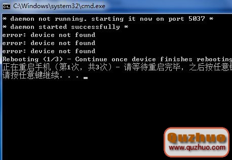 4:窗口進入第二步,等手機進入到桌面,還需要按任意鍵兩次。這期間手機會有幾次重啟,手機重啟進入系統,然後再按任意鍵。