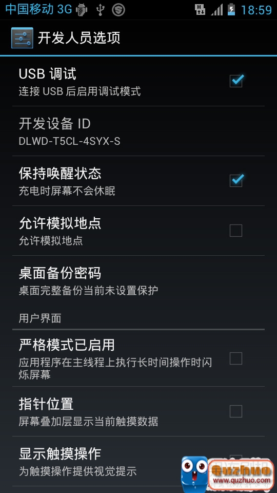 2、在手機的“設置”-“開發人員選項”裡,選上“USB調試”和“保持屏幕喚醒”