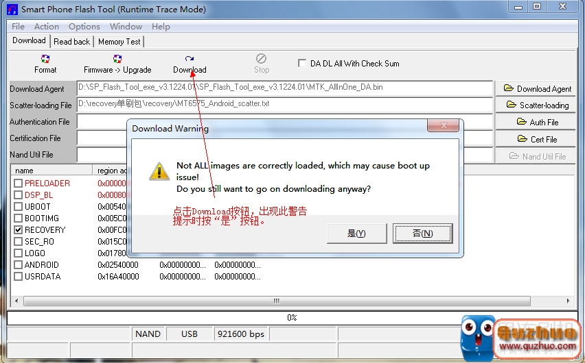 Step 8. 點擊Download按鈕,會出現一個警告對話框,點擊“是”按鈕;