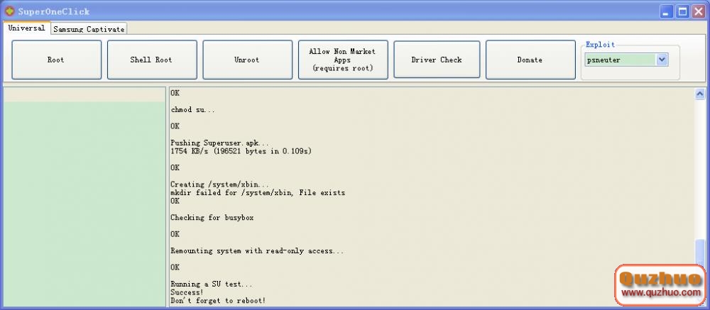 2.最後會出現success!don't forget to reboot! ,手機菜單裡會出現“授權管理”圖標(黑色骷髅頭),說明root